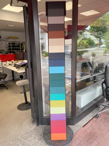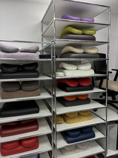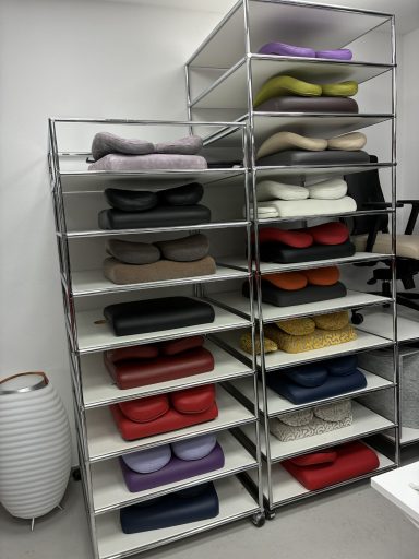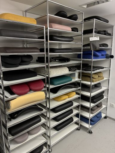 In der Ausstellung stehen über 30 fertig montierte Drehstühle in verschiedenen Ausführungen zur Verfügung. Über 20 fertige Sitzvarianten sind schnell tauschbar. Gerne kann der Interessent einen Drehstuhl geliehen in seiner gewünschten Ausführung zum Probesitzen am eigenen Arbeitsplatz mitnehmen bzw. geliefert bekommen.