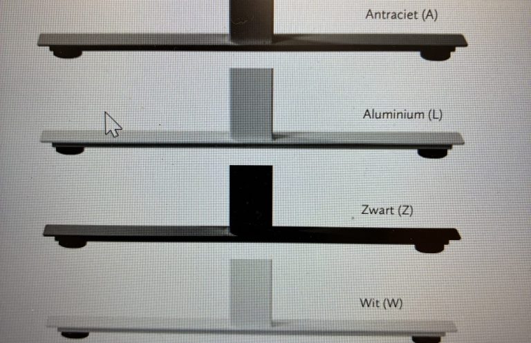 Gestellfarben sind weiß, Aluminiumfarben, anthrazit und schwarz.
