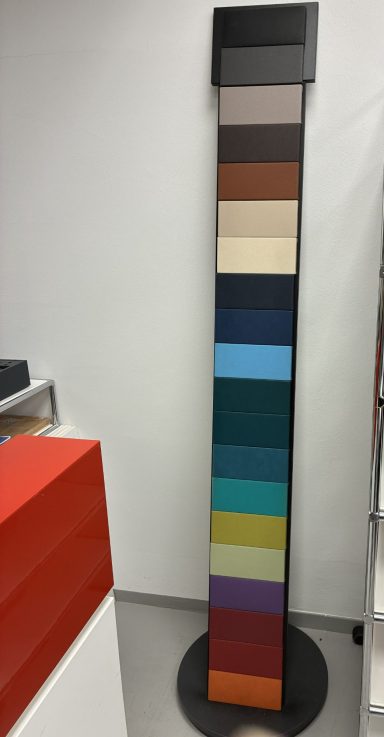 Wir haben knapp 2 Kilometer Stoff in 26 verschiedenen Farben für Sie auf Lager. Alleine 4 Hersteller bevoraten für uns diverse Lederqualitäten in diversen Farben