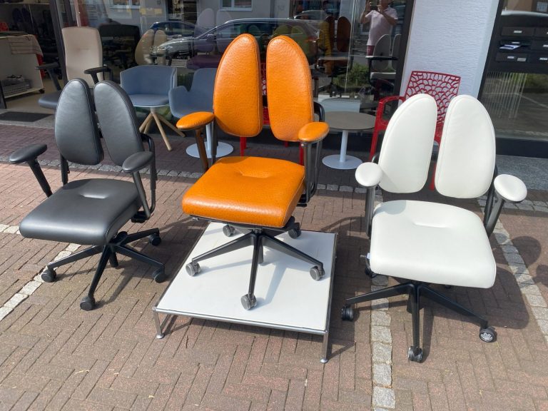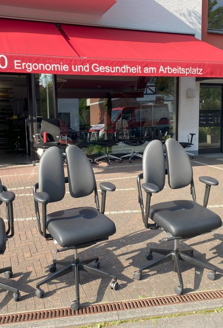 Alleine 4 Sondersitze sind zum Testen in der Ausstellung vorrätig. Hier ist das Probesitzen am eigenen Arbeitsplatz unter den eigenen Life-Bedingungen sehr wertvoll!